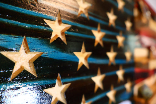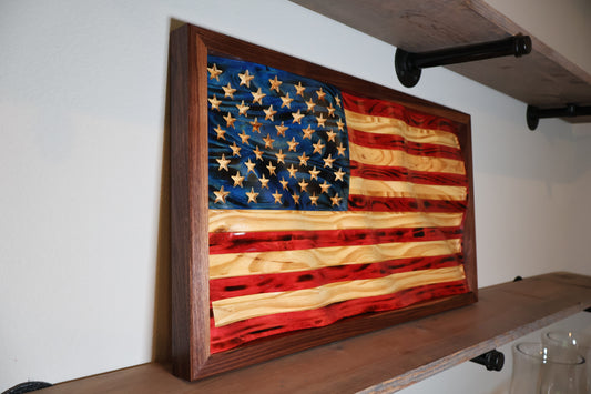 American Flag Wavy Wall Art with Premium Walnut Frame 14" x 26"
